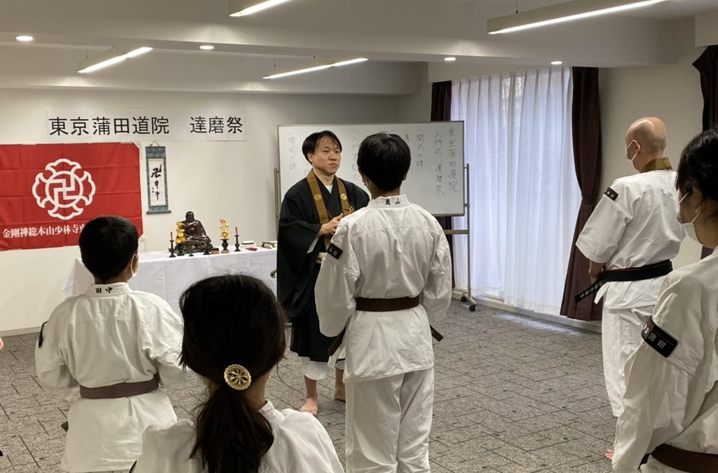 達磨祭は、その祖師達磨大師の命日(10月5日)の前後に、達磨大師を礼拝し、その遺徳を偲んで法要を行うと共に、拳士一人ひとりがいっそう拳禅一如の修行に精進し、「達磨の子」として七転び八起き、不撓不屈の精神と本当の強さとやさしさを身につけることを互いに誓い合う行事です。