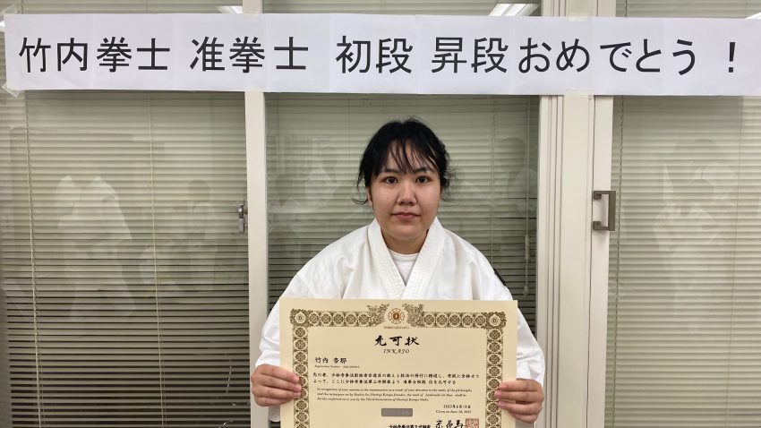 竹内拳士が准拳士初段を允可されました! 他武道で実現できなかった念願の黒帯を、地道な努力で勝ち取りました! 拳士としてのスタート地点に立ちました。本当におめでとう!