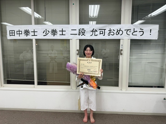4月の東京都昇格考試にて、田中美優拳士が少拳士二段を受験し合格。