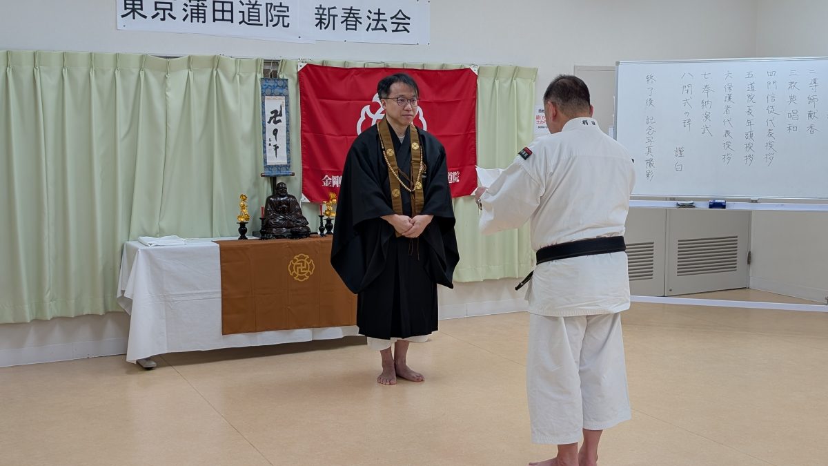 新春法会は道院長挨拶に始まり、代表挨拶は、今年も羽田副道院長。